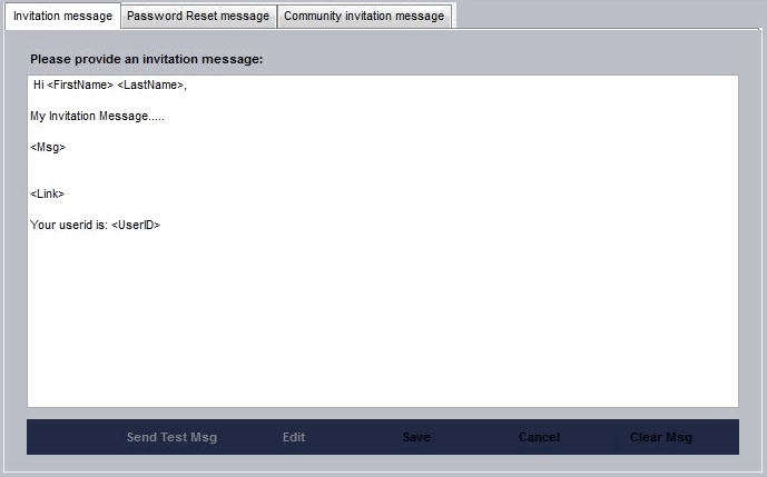 2 On the "Community Invitation message" tab, change the invitation message. You can use system tags for placeholders if desired.